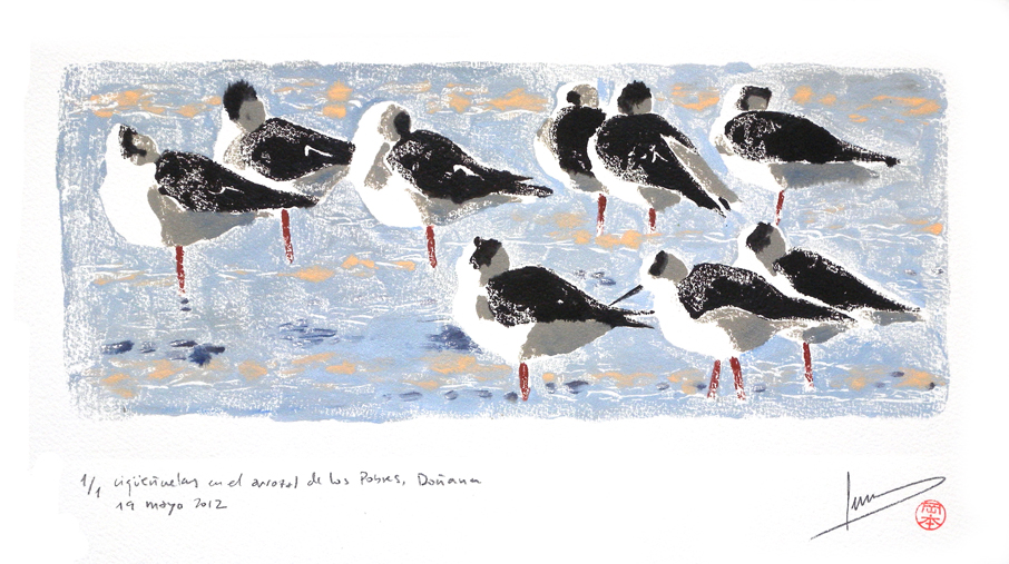 (aquí están todas las ilustraciones de la guía de las aves de Sierra Morena y todos los monotipos y linograbados)