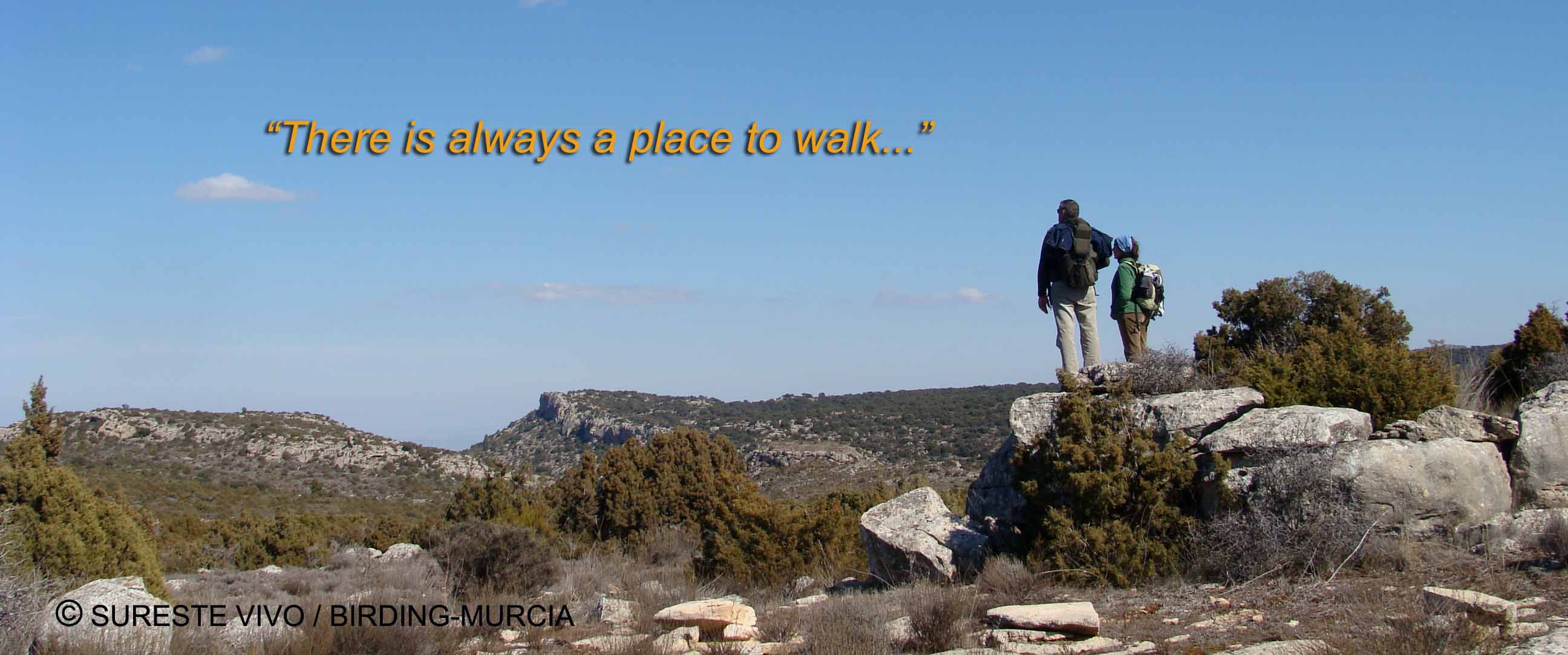 Para todos los amantes y aficionados al senderismo Sureste Vivo, como parte de nuestro proyecto de ecoturismo, han seleccionado una amplia oferta de itinerarios guiados que nos permitirán, a través de nuestroS programas WALKINGMURCIA & BIRDINGMURCIA, recorrer la Región de Murcia de norte a sur y de este a oeste y descubrir sus paisajes más singulares, su biodiversidad, sus aves y sus costumbres tradicionales. Te proponemos una inmersión en la naturaleza para descubrir algunos de las rutas mas desconocidas y singulares de la península ibérica.